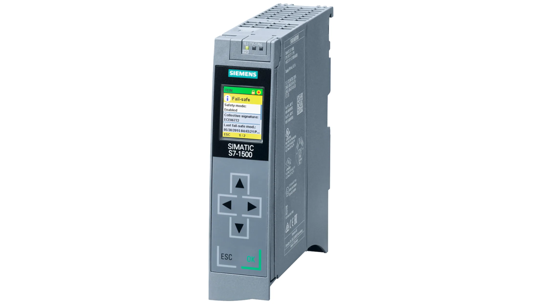 The Siemens SIMATIC S7, CPU 1511TF-1 PN is a central processing unit with work memory 225 KB for program and 1 MB for data, it has one interface for PROFINET IRT with 2-port switch. It has 30 ns bit performance.